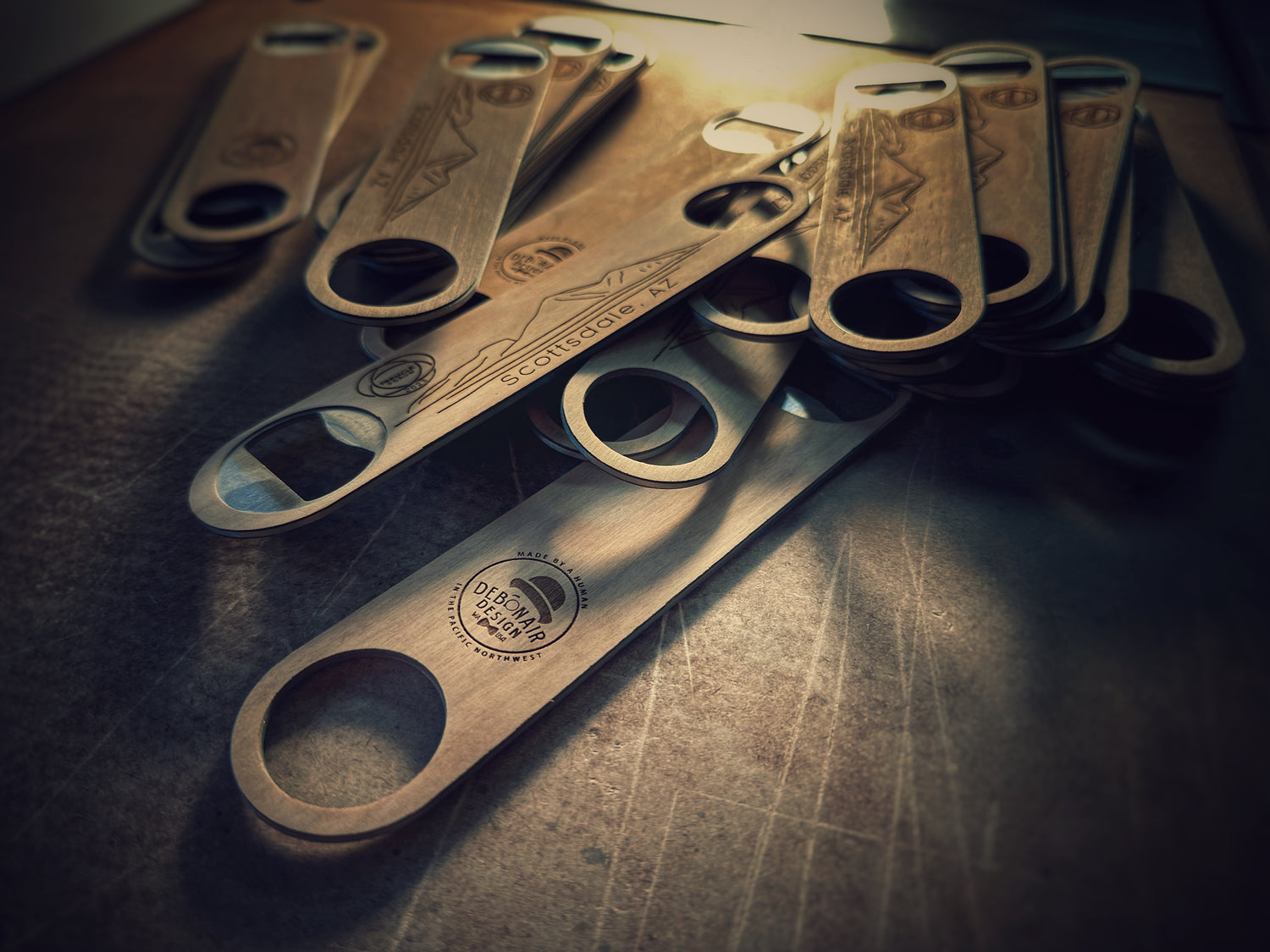Looking for a way to make your brand or event stand out? Our custom branded commercial and corporate products offer a unique way to showcase your brand identity in a memorable and lasting way. From custom wood signage, engraved office accessories, wearable goods, to promotional laser-cut products, we can create custom pieces that reflect your brand's style and messaging, creating a cohesive and professional look that represents your business in the best possible light.