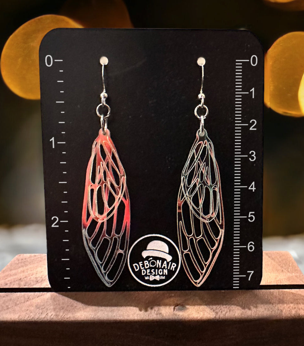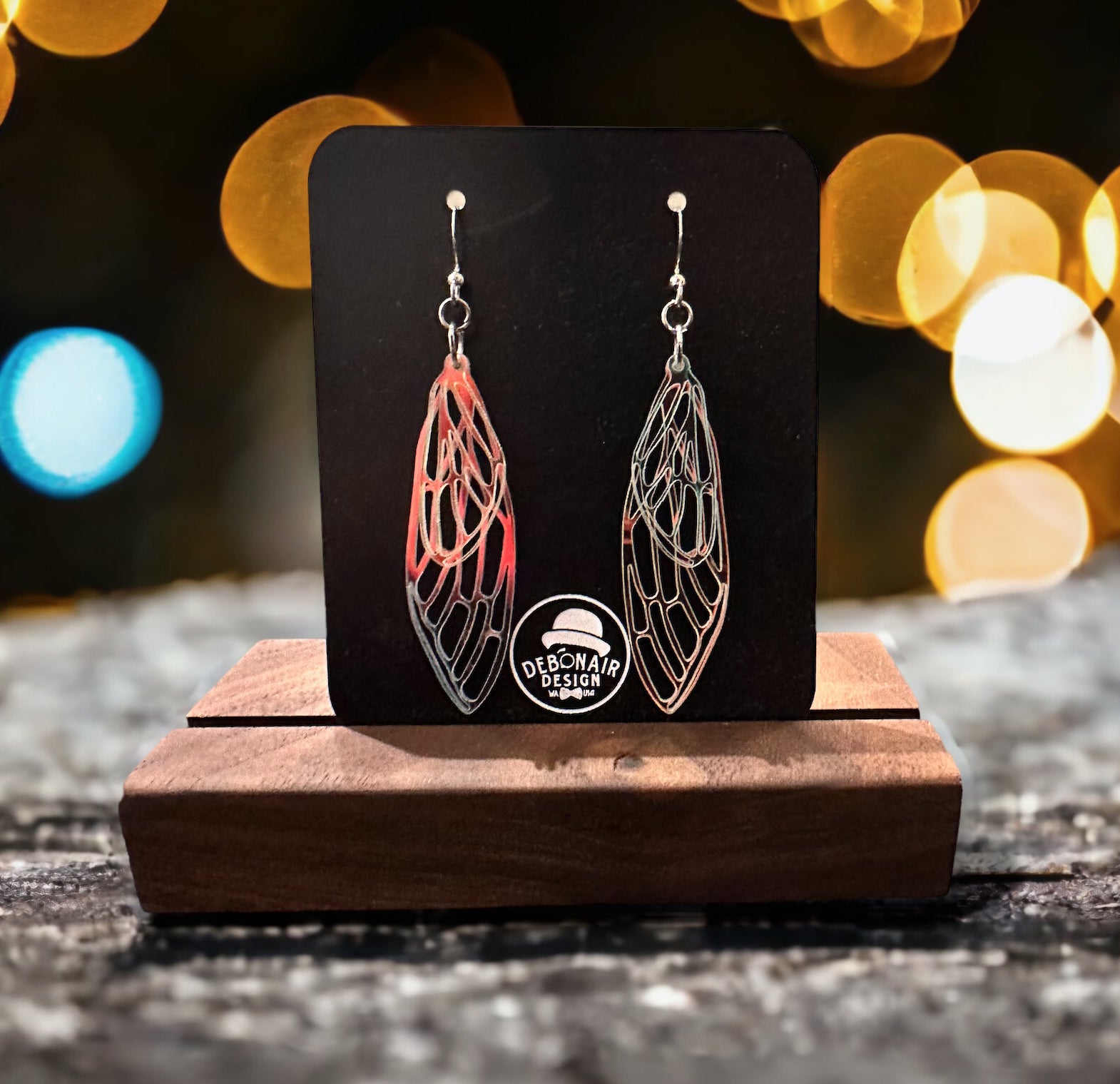 Adorn your ears, with these stunning acrylic iridescent earrings, inspired by the delicate and intricate wings of the cicada. These earrings feature a mesmerizing blend of colors that shimmer and shift in the light, creating a truly eye-catching effect.